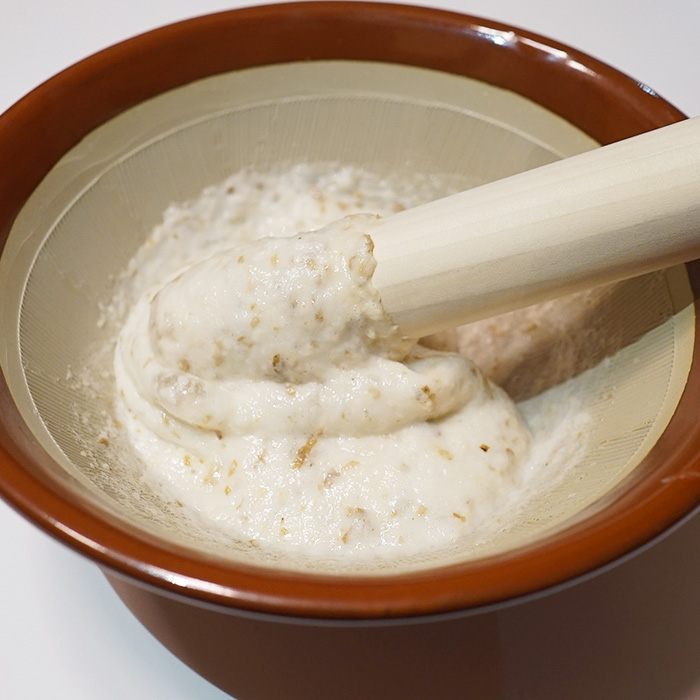 ※すり鉢が無い場合は器にとろろを入れ、箸を使って丁寧に混ぜ合わせてください。