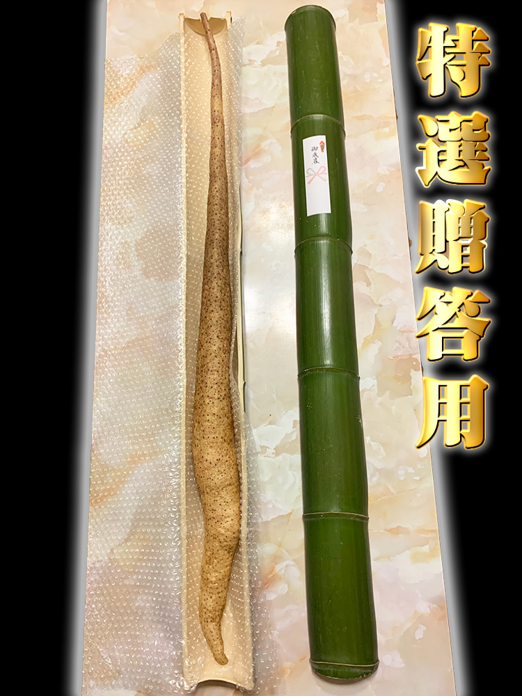 取れた自然薯の中でも数%程しかない大きさ、太さ、形の良さ、どれを取っても申し分の無い自然薯を大切に竹筒に入れてお送りいたします。